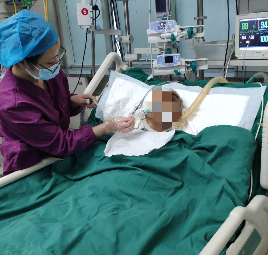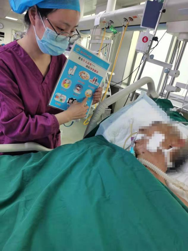 我们每天护理的病人,情况都各不相同。他们或清醒,或迷糊,或昏迷,或烦躁。因为监护室的特殊性,不允许家属进来,对于那些神志清醒的病人,他们会感到恐惧和无助,这时候一些轻声细语的安慰,可能会让他们在这个陌生的环境得到些许慰藉。对于神志迷糊或者昏迷的病人,因为他们长期卧床,我们要按时给病人翻身,护理好他们的皮肤。而对于烦躁的病人,我们就尽可能地安抚病人的情绪,让病人平静下来,配合我们的治疗。